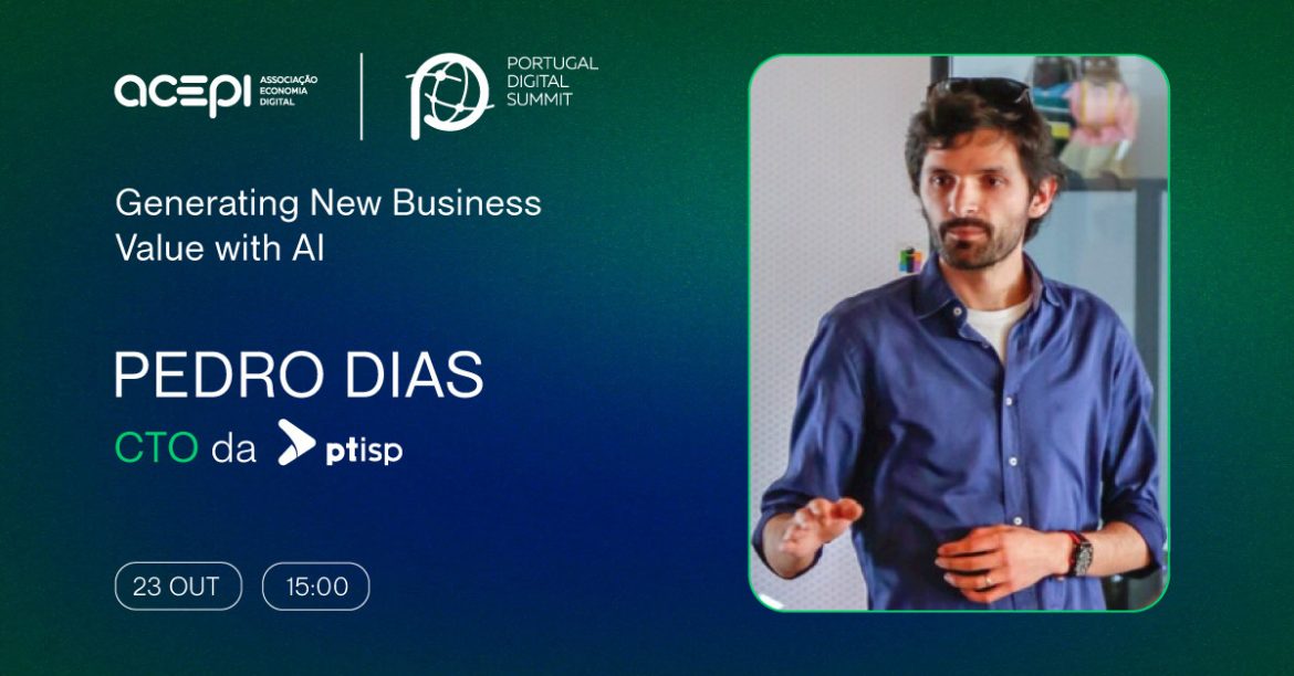 A PTisp tem o orgulho de anunciar a sua participação no Portugal Digital Summit 2024 – um evento de destaque no cenário tecnológico português – nos dias 23 e 24 de outubro, em Lisboa. Destaque para a participação de Pedro Dias, CTO da PTisp, num dos painéis dedicados à Inteligência Artificial, onde partilhará a sua vasta experiência e visão sobre o futuro da IA na transformação digital dos negócios.
